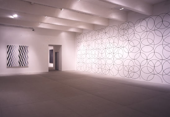 On the right: Composition with Circles 2 (2000) graphite, acrylic paint, and permanent marker on plaster wall, 13 3/4' x 49 1/2'